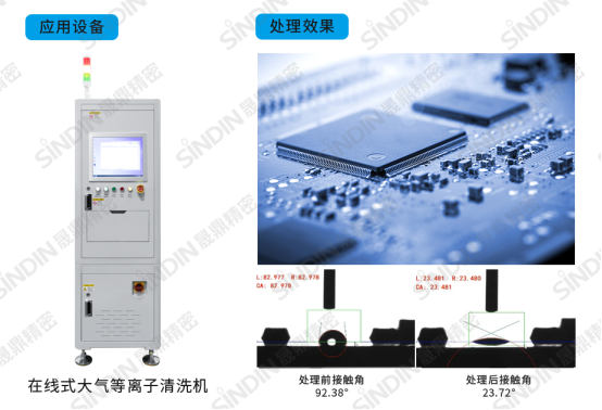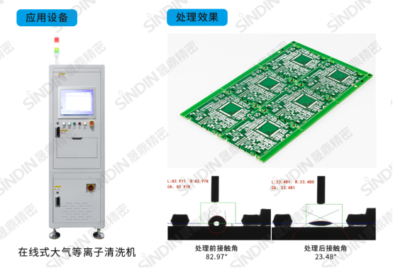 針對SMT表面貼裝,在錫膏印刷前,通過等離子活化,可顯著提高線路板潤濕性,改善表面附著力,從而改善錫膏印刷的質量,有效避免元器件虛焊、空焊等問題,提升可靠性和表面貼裝質量。
